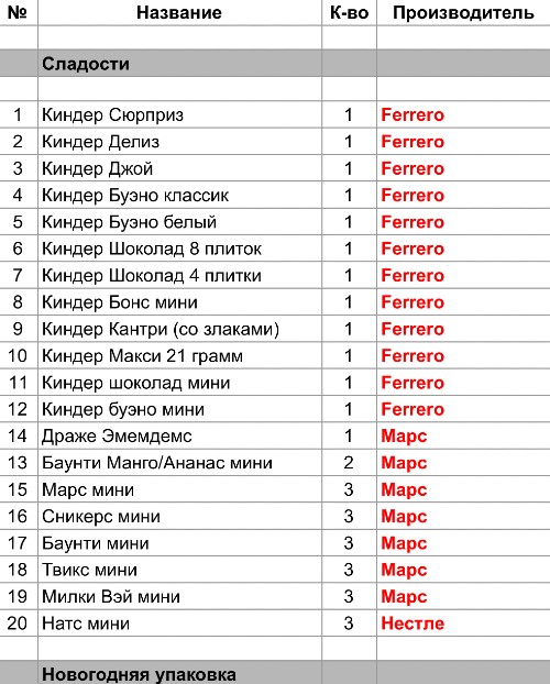 Опубликовано в Составы подарков
